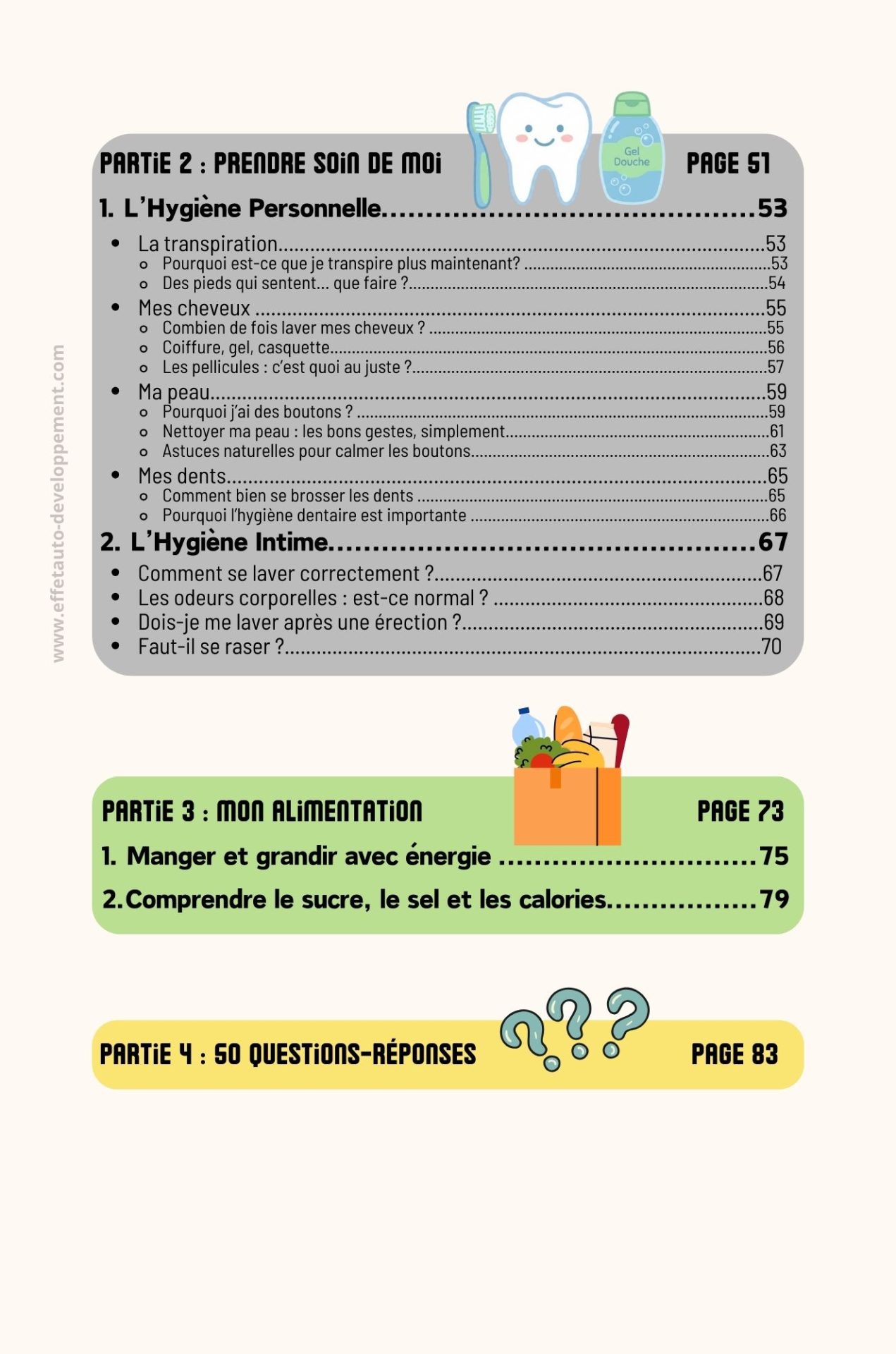 Des repères clairs sur l’hygiène, la peau, les cheveux, les odeurs corporelles, le rasage et le respect de son corps, expliqués sans tabou ni jugement.